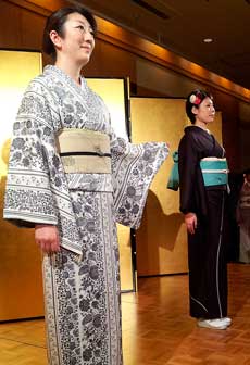 きものの産地、種類、着こなしを、生徒さんによるアピールのショーです。