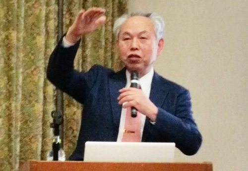 講師は小泉産業グループの権藤専務、「CSR(三方よし)経営の実践」