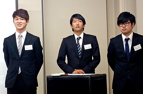 左から、塚本次長(京都和装)、近藤君と藤井参与(総務人事)
