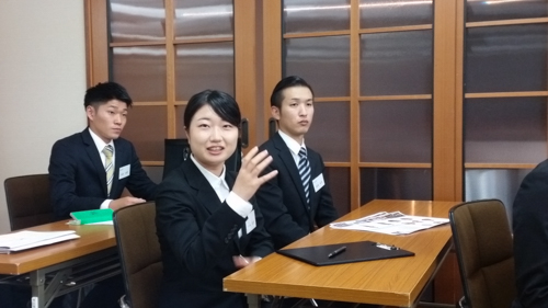 先輩から色々な指摘のあと、内定学生8名から感想を述べ合いました。