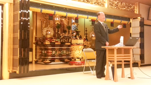 安穏殿にて豪華なお弁当を頂き、続いて金児会長の講演会です。