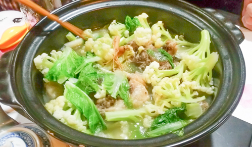 いよいよ火鍋・・近江牛のテールや野菜を煮込んでいます。