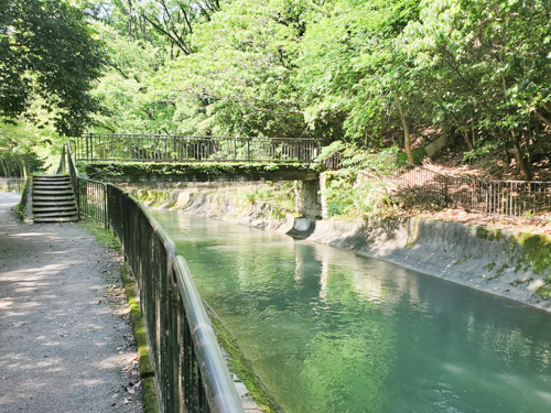 琵琶湖から疎水(右側の柵の外)を通じて京都へ浄水を運びます。