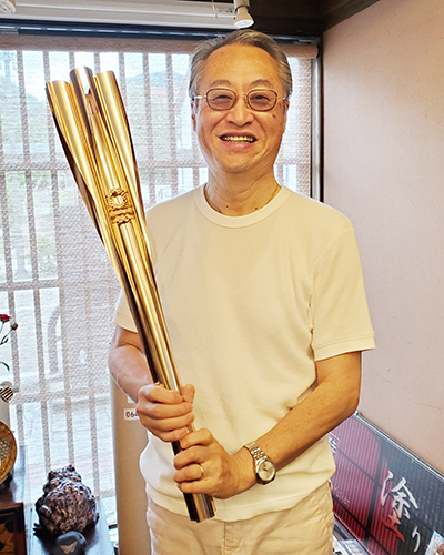 20年以上のお付き合いのある「多田桂寛」の多田社長(2代目)、東京オリンピックの加賀市のリレーでつかったトーチカを持って・・・