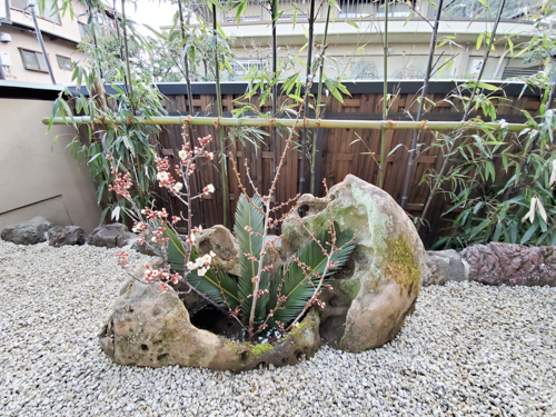 座敷から飛び石をつたって小さな庭の散歩ができます。