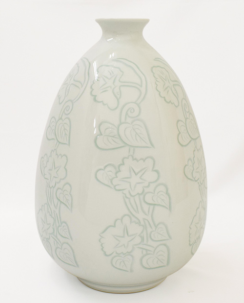 「白磁緑・夕顔彫文・面取」井上萬二作(人間国宝)