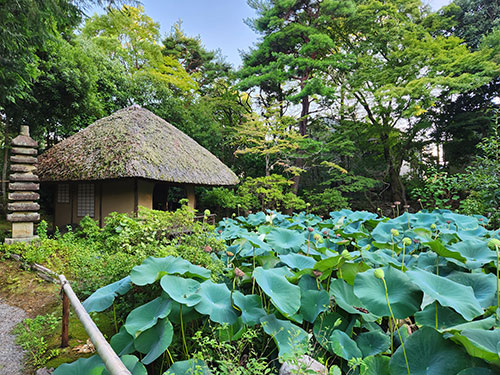 蓮池に茶室がいくつもあります。