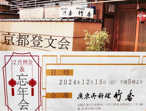 京都・登文会の12月例会が祇園竹香で開催されました。
