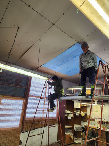 長らく使わなかった放置された管理棟を大修理して「本部棟」へと改修します。