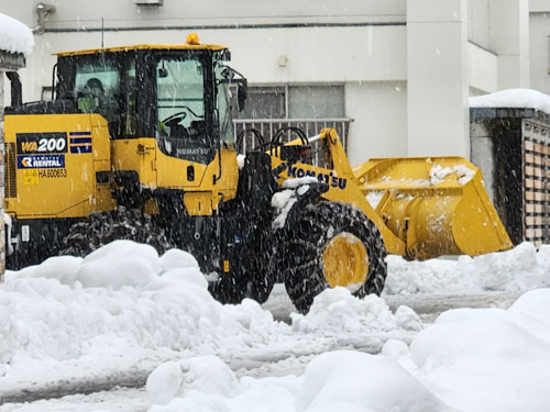2000坪の工場敷地は雪かきが大変なのです”(-“”-)”