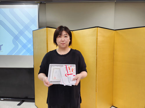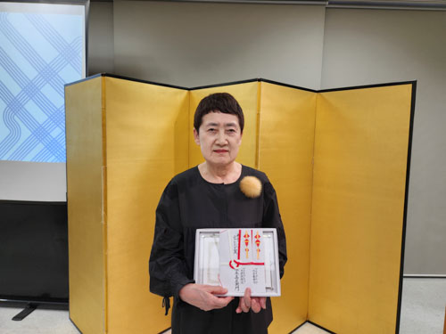 ◆文化貢献賞:「西陣織あさぎ美術館ショップ」美術館の企画性とホスピタリティで高い評価(グーグルで4.7点、5点満点)を頂戴しています。ショップでも海外の方や工芸ファンの若い方との交流が盛んで大いに西陣織の宣伝と高揚に貢献しました。
