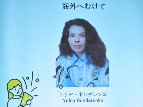 ウクライナ人のユリヤさんはアーチストで、バイリンガル(ウクライナ、ロシア、ドイツ、英語、トルコの言語を話す)で日本語は尊敬語、関西弁を操り、習字も実に上手で、欧米のお客様から大好評です。