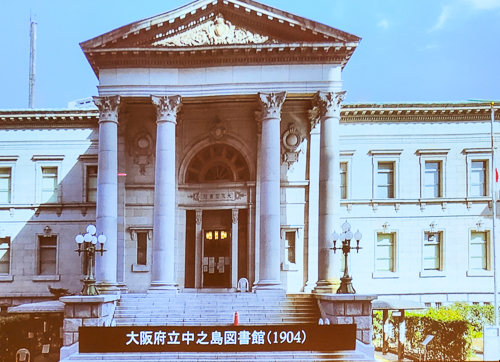 大阪府立中之島図書館(1903年竣工、重文)はギリシャ神殿を思わすようなコリント様式で建設されました。中央のドームのステンドグラスが有名です。