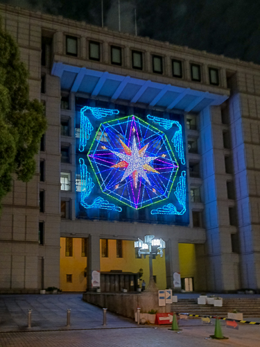 大阪の市役所は、巨大LEDスクリーンが正面にあります。