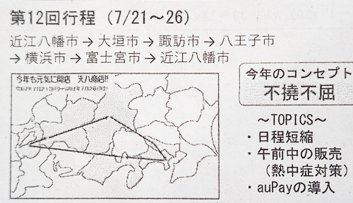6泊7日間のコースの説明です。(近江八幡→大垣→諏訪→八王子→横浜→富士宮→近江八幡)
