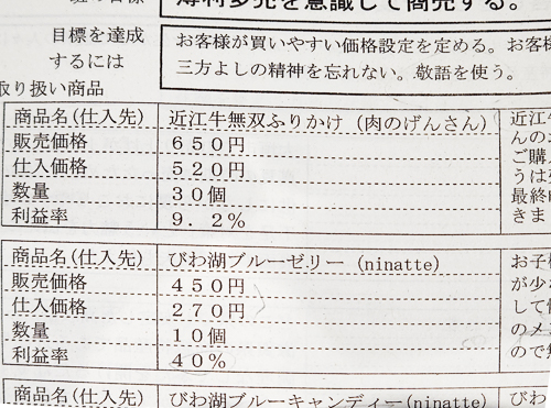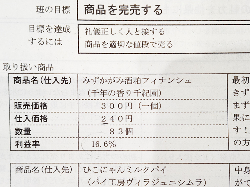 各班別の行商実習の成果の発表がありました。