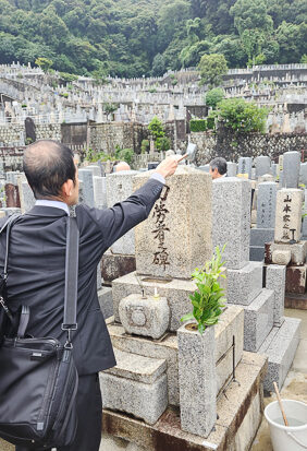 まず塚本家の先祖への墓参り、それぞれお焼香です。