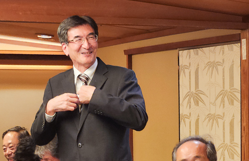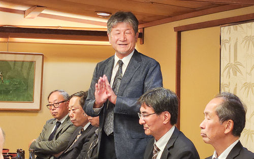 西村君は、「今日は私の40年前の新入社員の頃を思い出しました。あの日も私は新米で最若手でした。あの頃の先輩諸氏がそのままお元気のお姿でなりよりです。どうかよろしくお願いします」