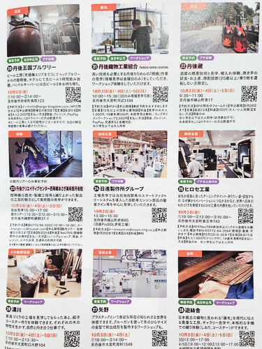 参加企業28社は、織物業(ちりめん、西陣織)、機械金属業(精密機器、鋳物、刀剣など)、農業、酒造など丹後の地元の町工場が公開28社を見学できます。