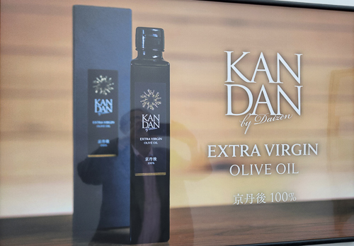 丹後のような水分の多い豪雪地帯は、木の葉っぱに雪が凍り付き枝を傷める(枝が氷の重さで裂ける)ので、降雪に日は丸太でオリーブの枝を叩いて氷を落とすのだそうです。重労働ですね。オリーブオイルのブランドの「KANDAN」も寒暖の差が激しい丹後ならではの気候からネーミングしたのでそうです。