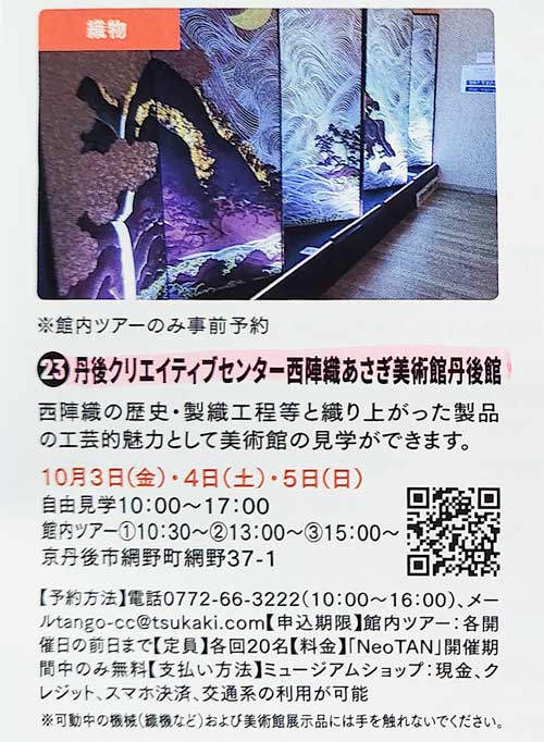 10月3~5日、京丹後市と与謝野町が主催する「NeoTan丹後オープンファクトリー2025」巡りに参加しました。