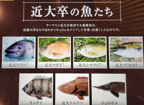 近大マグロはじめ近大が手掛ける魚の養殖のリストです。