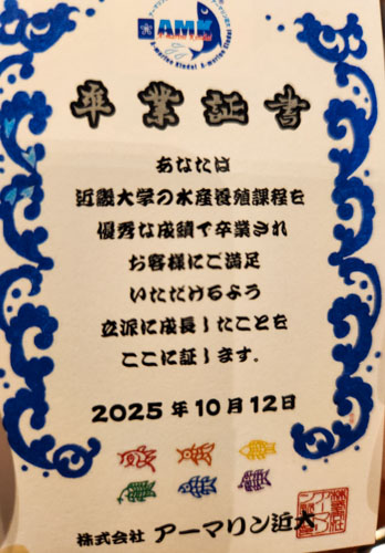 水産学部の学習をして完食すると「アーマリン近大」の卒業証書をくれます。