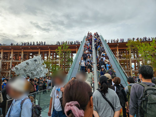 大勢の人は、大屋根リングで万博の余韻を楽しんでいます。