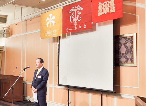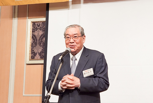 まずは今回の当番校の凌霜会の岡田支部長(神大S45営卒)のご挨拶。
