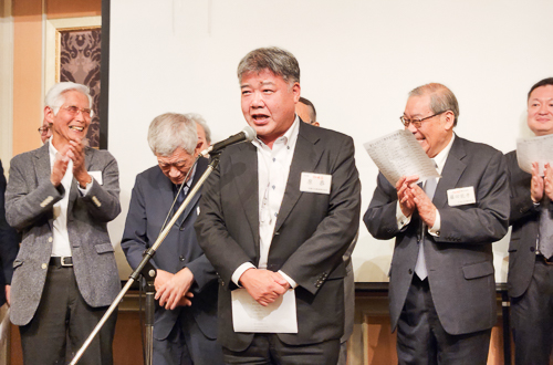 乾杯は如水会の藤田支部長(一橋S50商卒)です。