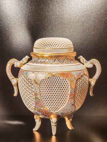 沈寿官の作風は華麗で透かし彫りを得意した精緻な作品です。