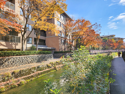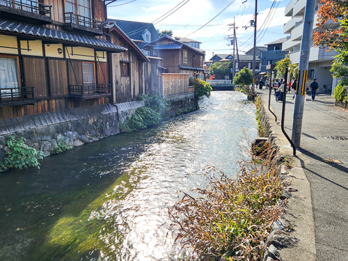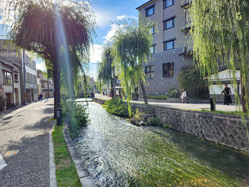 北から白川が流れて疏水へ合流し(動物園のあたり)、ここで分水して南へ白川が流れます。