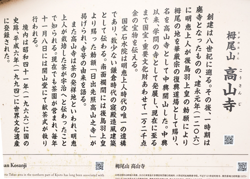 高山寺は鳥羽僧正の鳥獣戯画(国宝)が有名です。