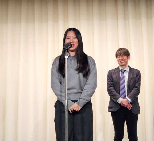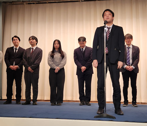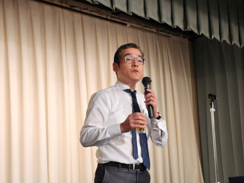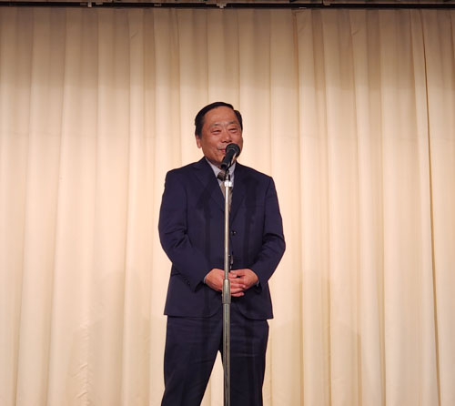 乾杯の挨拶は大嶋部長(塚喜商事の経理財務)