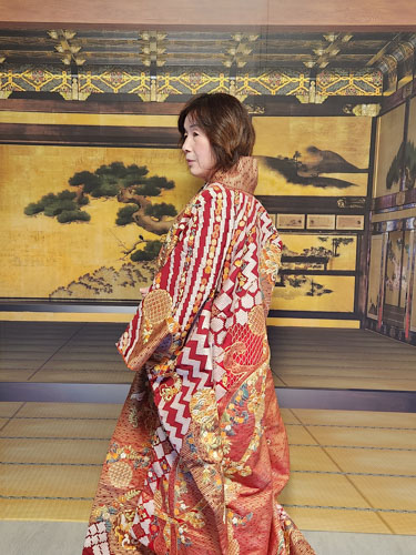 松井マネージャーはお引きづりを着て、淀君の気分で・・・