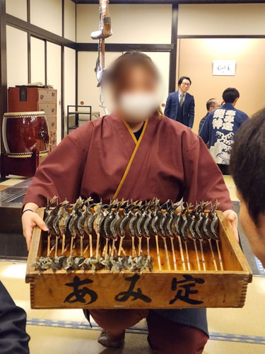 私の幼少の頃はあみ定の舟に乗って、投網で鮎を取り舟の中で鮎の天ぷらを頂く季節の名物の風習がありました。