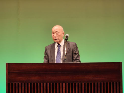 来賓の挨拶、百年経営研究機構の代表理事の後藤俊夫先生