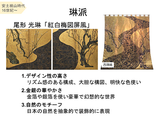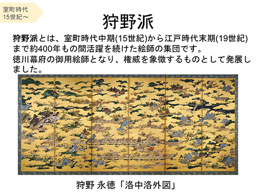 町衆の発展で西陣の千両が辻に富みが集まり、狩野派や琳派が隆盛を極めます。