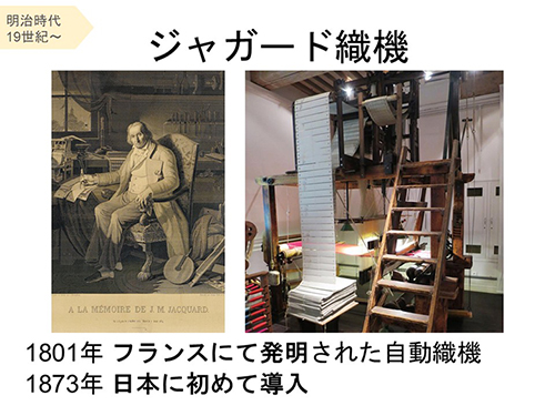 明治初年にジャガード織機がフランスのリヨンから入ってきました。