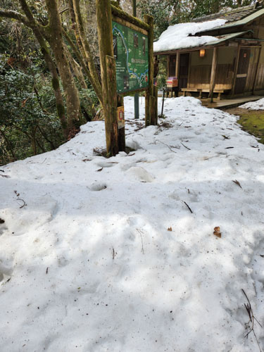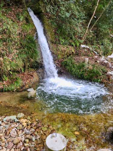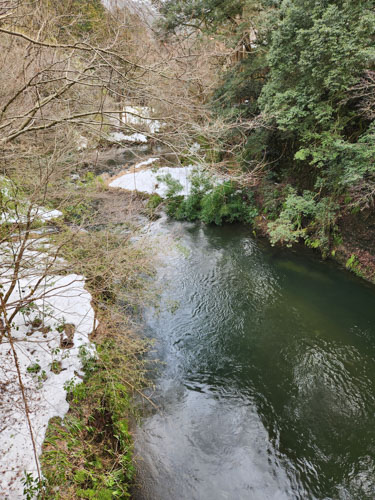 かよう亭の前を流れる鶴仙渓(大聖寺川)に芭蕉堂があります。