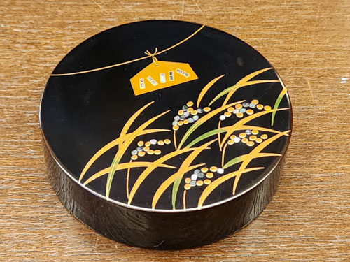 先代の作品の秋の「稲と鳴子」の香合(お香を入れる器)