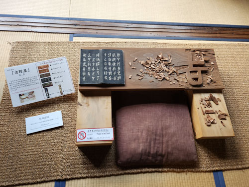 吉野屋の看板の篆刻をする北大路魯山人の仕事場