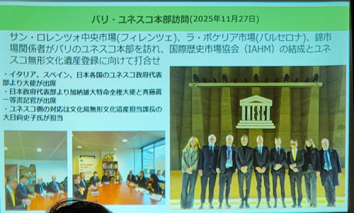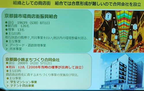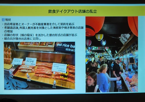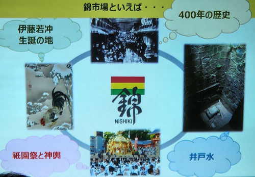 小生から質問「弊社は大阪の黒門市場で店をしていますが、通行するお客様の95%が外人さんですが、売上の50%が外人さん、50%が日本のお客さんです。日本のマルシェ(食の市場)へ世界の観光客が押し寄せるのは世界共通の事象です。ここで400年ある錦の歴史と京都文化の特徴をいかに出すかが正念場だと思うのですが・・・・」