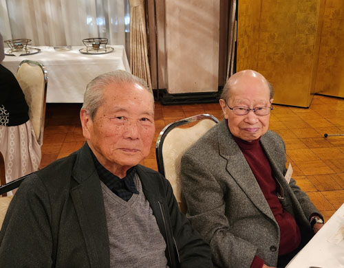 大先輩の巨頭・・・左は二宮先輩(昭31年経卒、93歳)、右は石井先輩(昭26年高商卒、96歳)