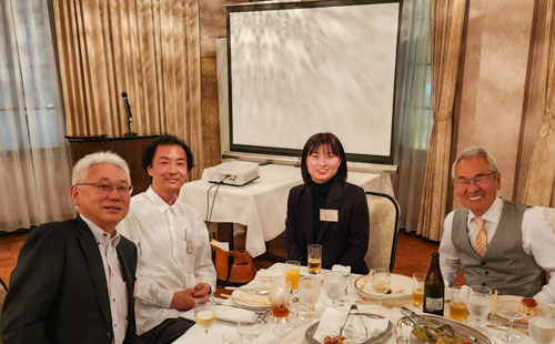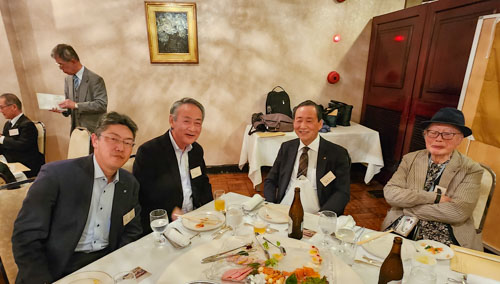 現役組・・・左から和木さん(平8年商卒、京都銀行)、吉田さん(会計士)、三井さん(昭60年商卒、宝酒造)