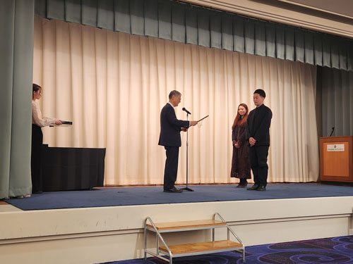 美術館の設計に貢献された門田圭司先生と大澤祐佳里先生へ感謝状と記念品です。