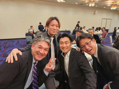 塚喜商事㈱東京事業部の長島次長と元・東京事業部のメンバー(公手と江下)と一緒に今村常務(右)