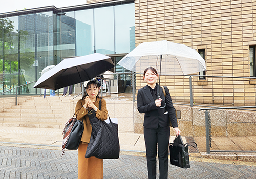 西陣織あさぎ美術館の大阪中之島館の澤田マネージャー(左)と山下サブマネージャー(ともに学芸員)です。(館長は小生)